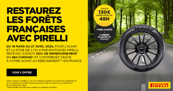 Du 18 mars au 27 avril 2024, pour l’achat et la pose de 2 ou 4 pneumatiques Pirelli, recevez jusqu’à […]
